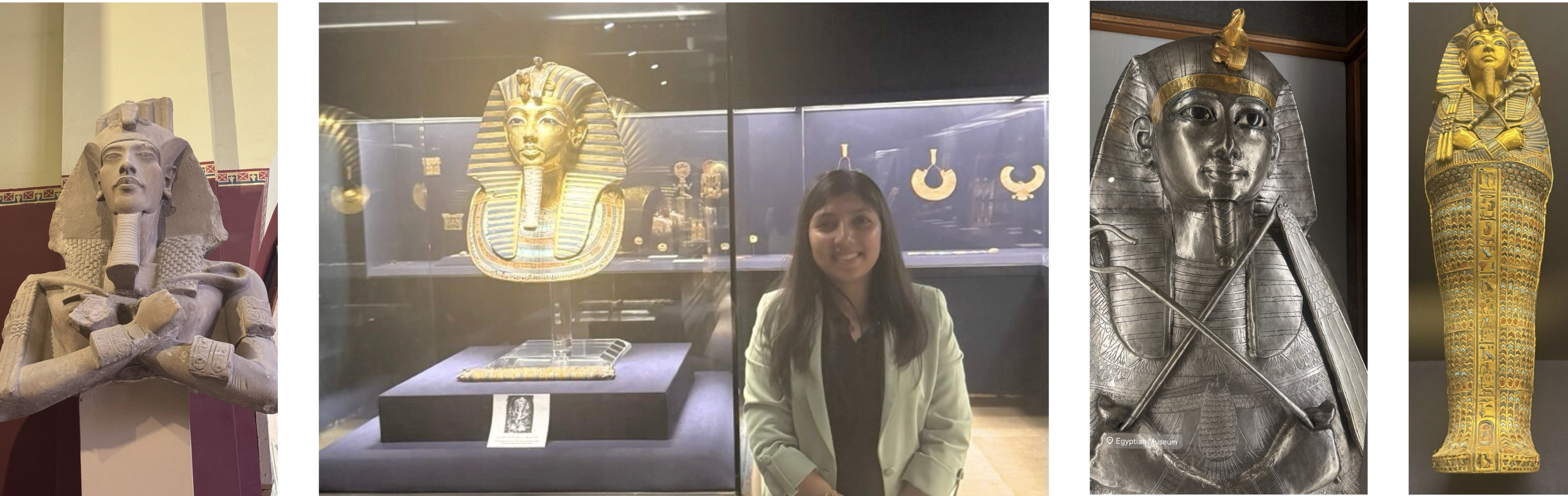 Walking through the museum felt magical. The quiet halls, and thousands of years of history around us it was peaceful and powerful at the same time. I saw golden masks, ancient papyrus, small tools, and statues that once stood in temples. The Tutankhamun Gallery was my favorite everything inside it looked so detailed and alive.