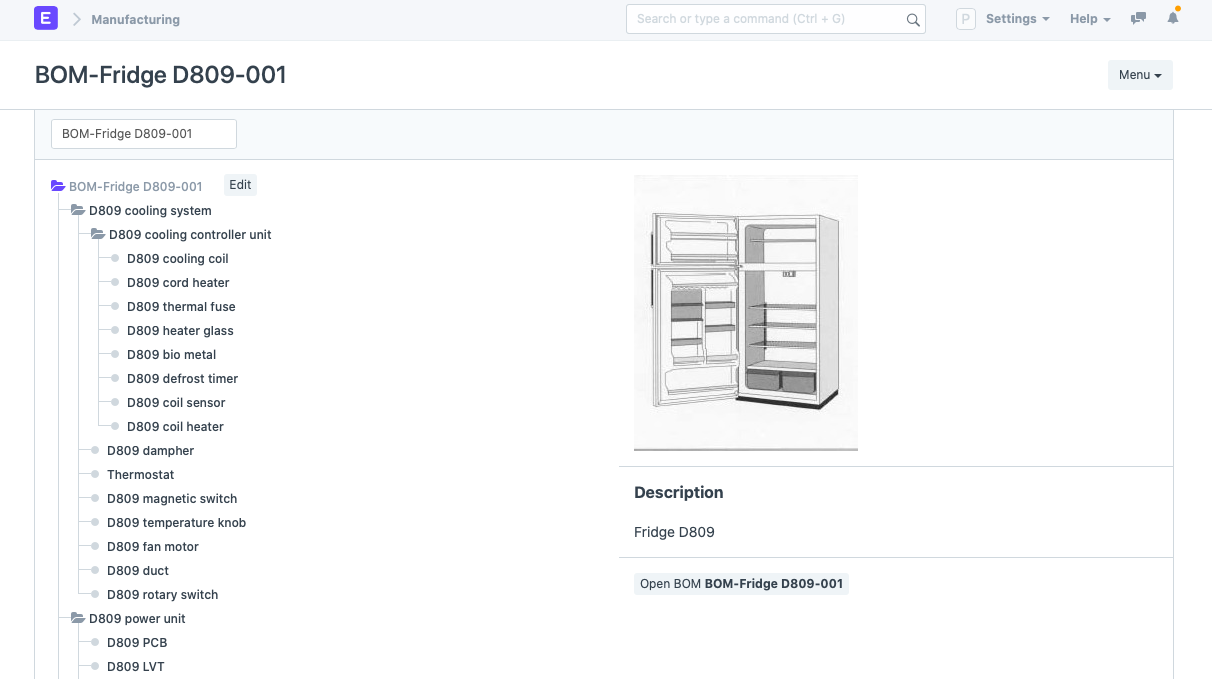 Remember I said BOMs are hierarchical in nature? This brings us to a concept called multilevel BOMs. Manufacturing more complex products involves creating the sub-assemblies before combining them to piece the finished product. Consider you’re manufacturing a refrigerator for example. After sourcing the raw materials, the subassemblies will be created first. In this case, the raw materials could be biometal, fuse, timer, cooling coil, condenser, pipes, and so on. The subassemblies like the compressor unit and power unit themselves will have their own BOMs and manufacturing process.