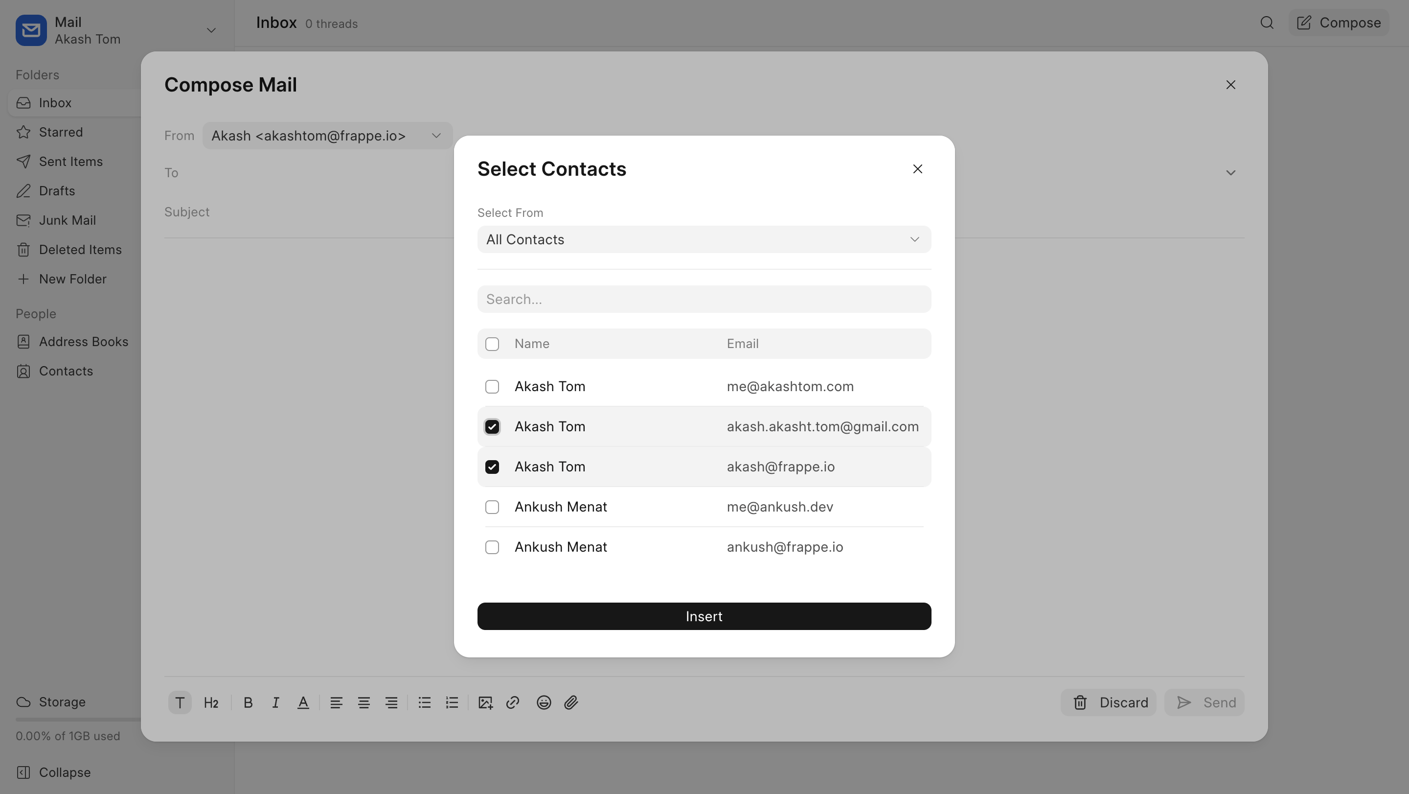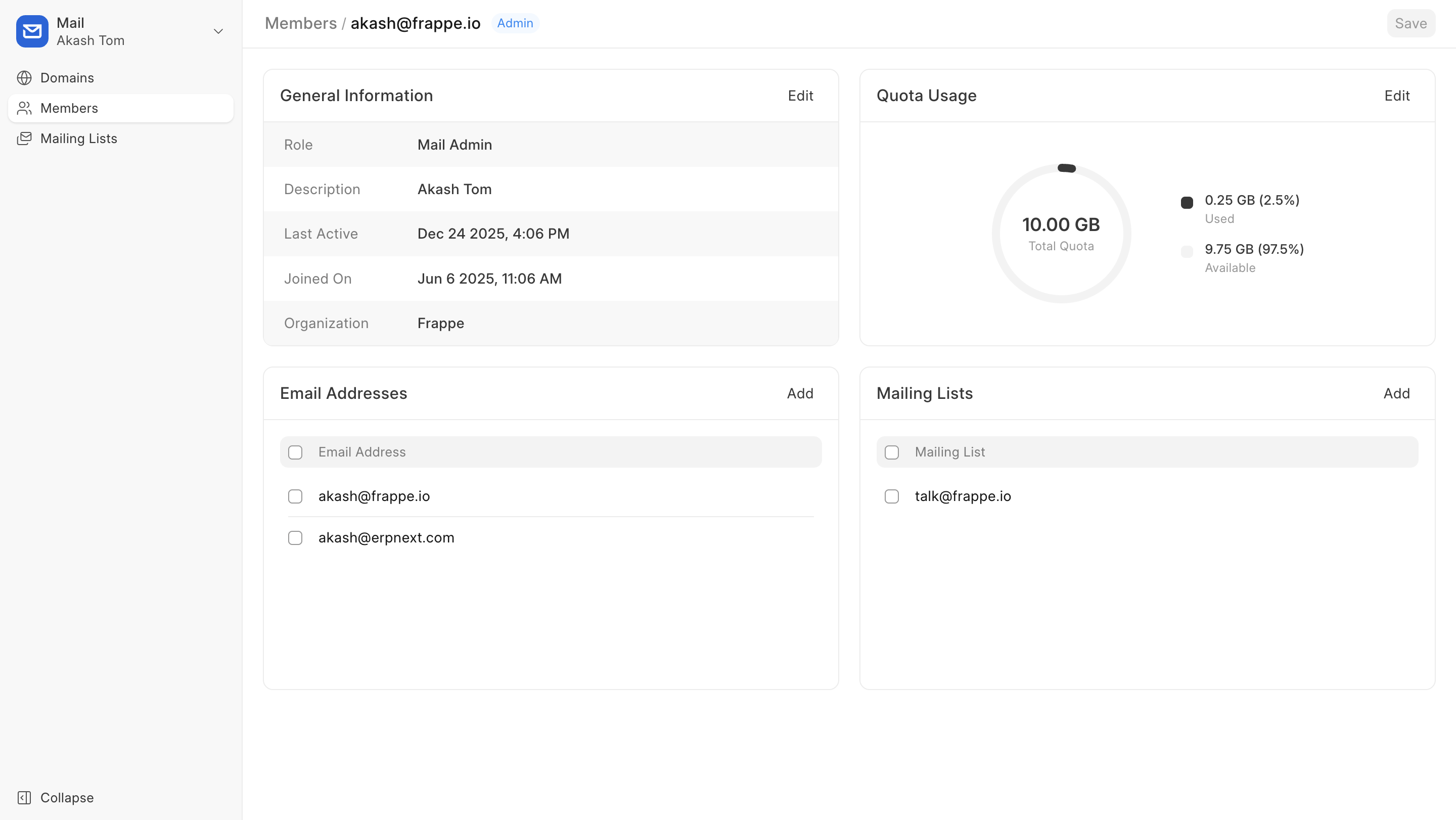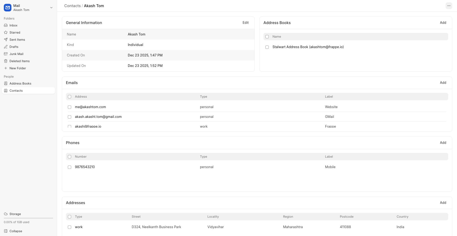 Frappe Mail is now a full-blown JMAP standard compliant generic client. This means that a user could hook up any JMAP-based server (like Stalwart or FastMail) to use Frappe Mail as the client. To make this possible, a lot of the Admin Dashboard APIs had to be re-written, with most of the previous DocTypes being deprecated. The UI was also updated to a large extent to match most of the currently available features.