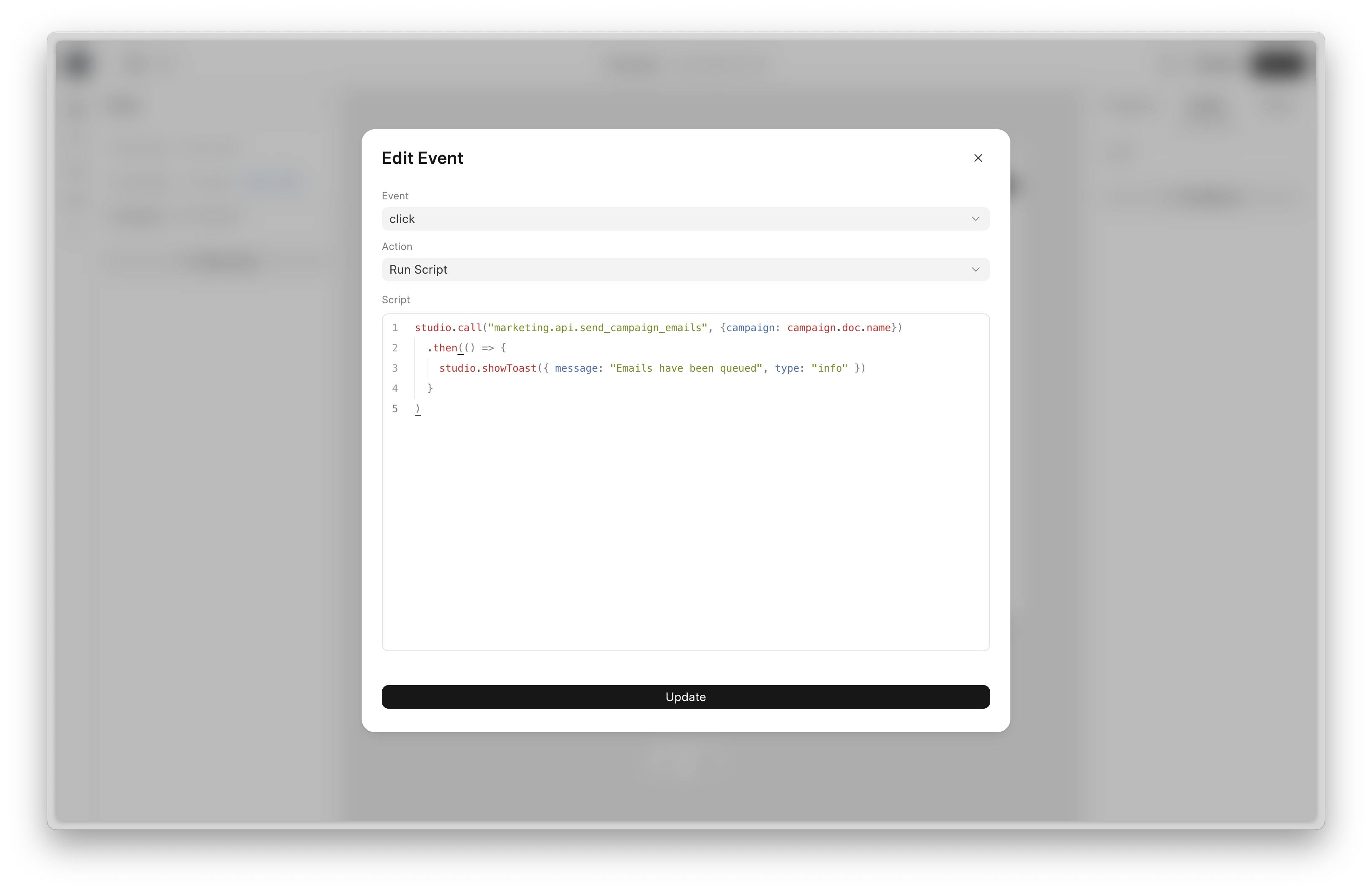 campaigns.insert.submit,campaigns.delete.submit,campaigns.setValue.submit. This keeps the UI in sync whenever changes are made.