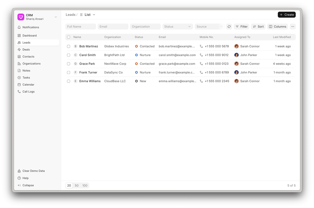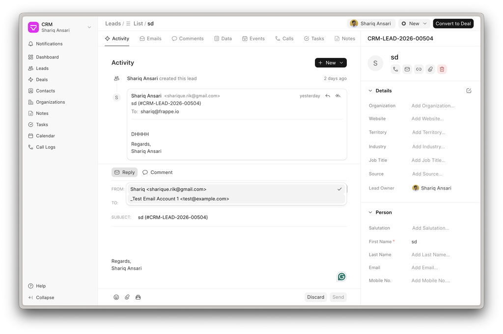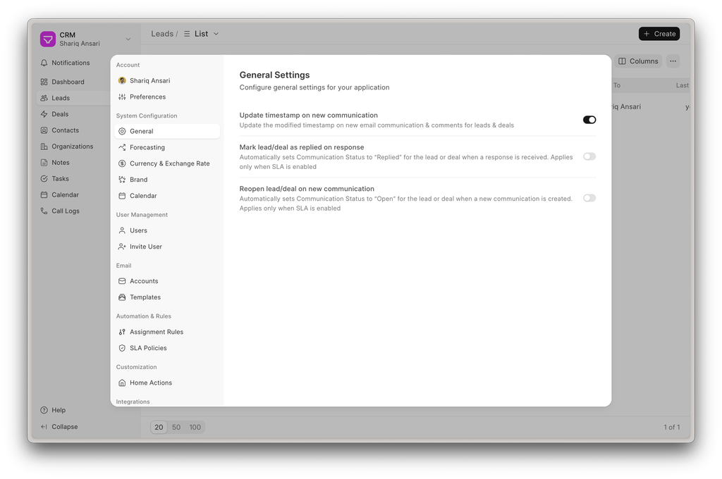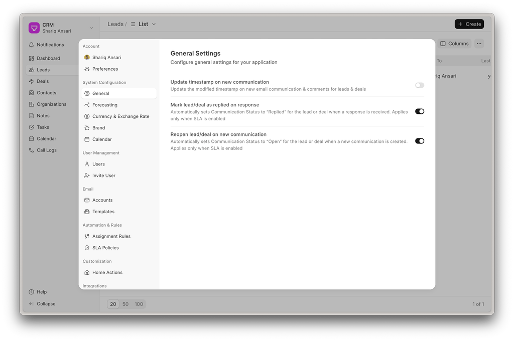 The modified timestamp of Leads and Deals now updates automatically whenever a new communication or comment is added. This ensures activity-based sorting and filtering always reflect the latest interactions.