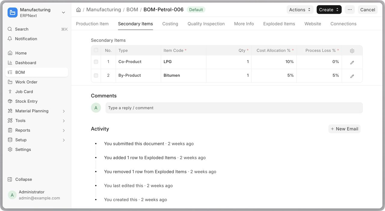 The Scrap Items table in BOM has been renamed to the Secondary Items table. Users can now specify multiple types of outputs instead of just finished goods and scrap. These types include “Scrap”, “Co-Product”, “By-Product” and “Additional Finished Good”. The distribution of the raw material cost is based on a percentage system between the finished goods and the secondary items. Read more about the feature here.
