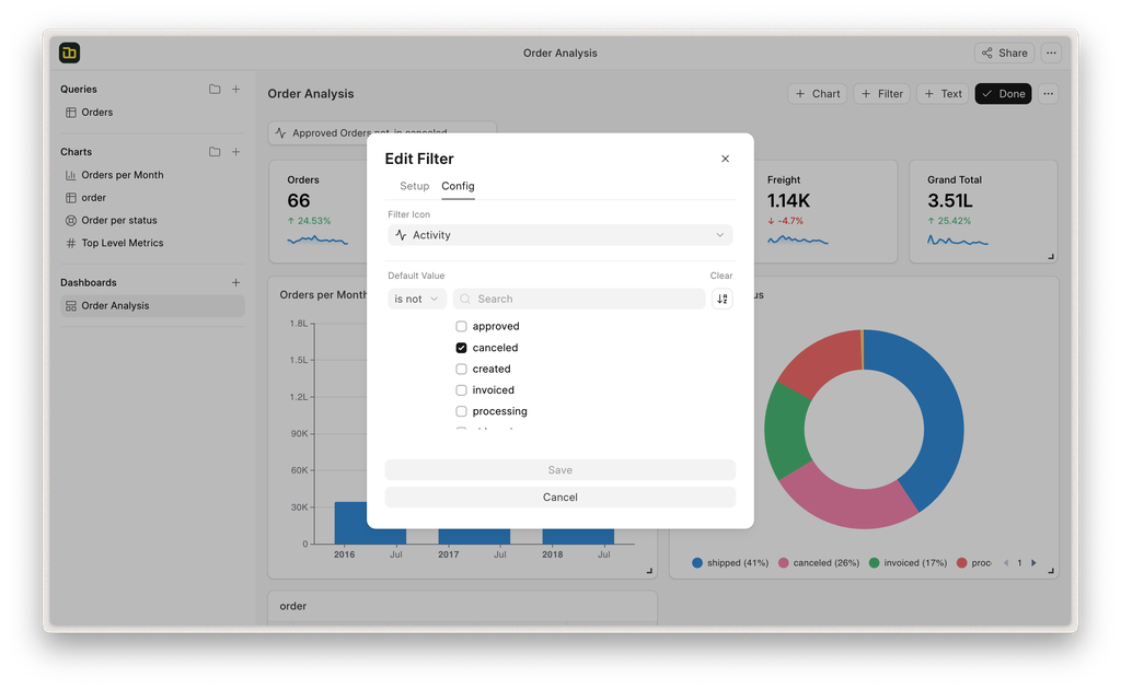 Dashboards are most effective when they show you exactly what you need the moment you open them. You can now set Default Filters at the dashboard level. Whether you want your team to always see "Current Quarter" data by default or filter by a specific "Active Region" this preset will save time and ensure everyone starts their analysis from the same baseline context