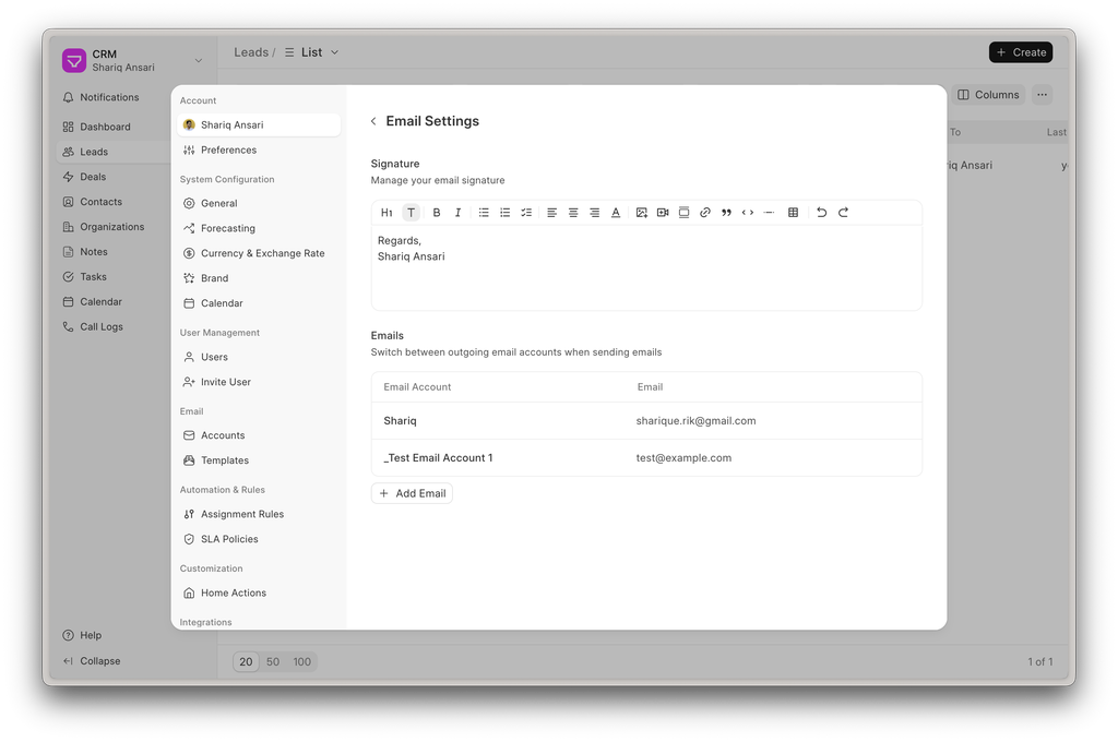 Users can now: - Set up a personalized Email Signature & Outgoing Email Accounts