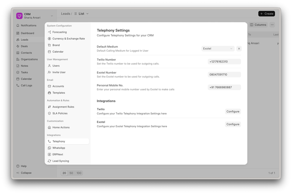 Improved the overall telephony experience with multiple fixes and enhancements. Call recordings from providers like Exotel and Twilio now play seamlessly without authentication prompts.