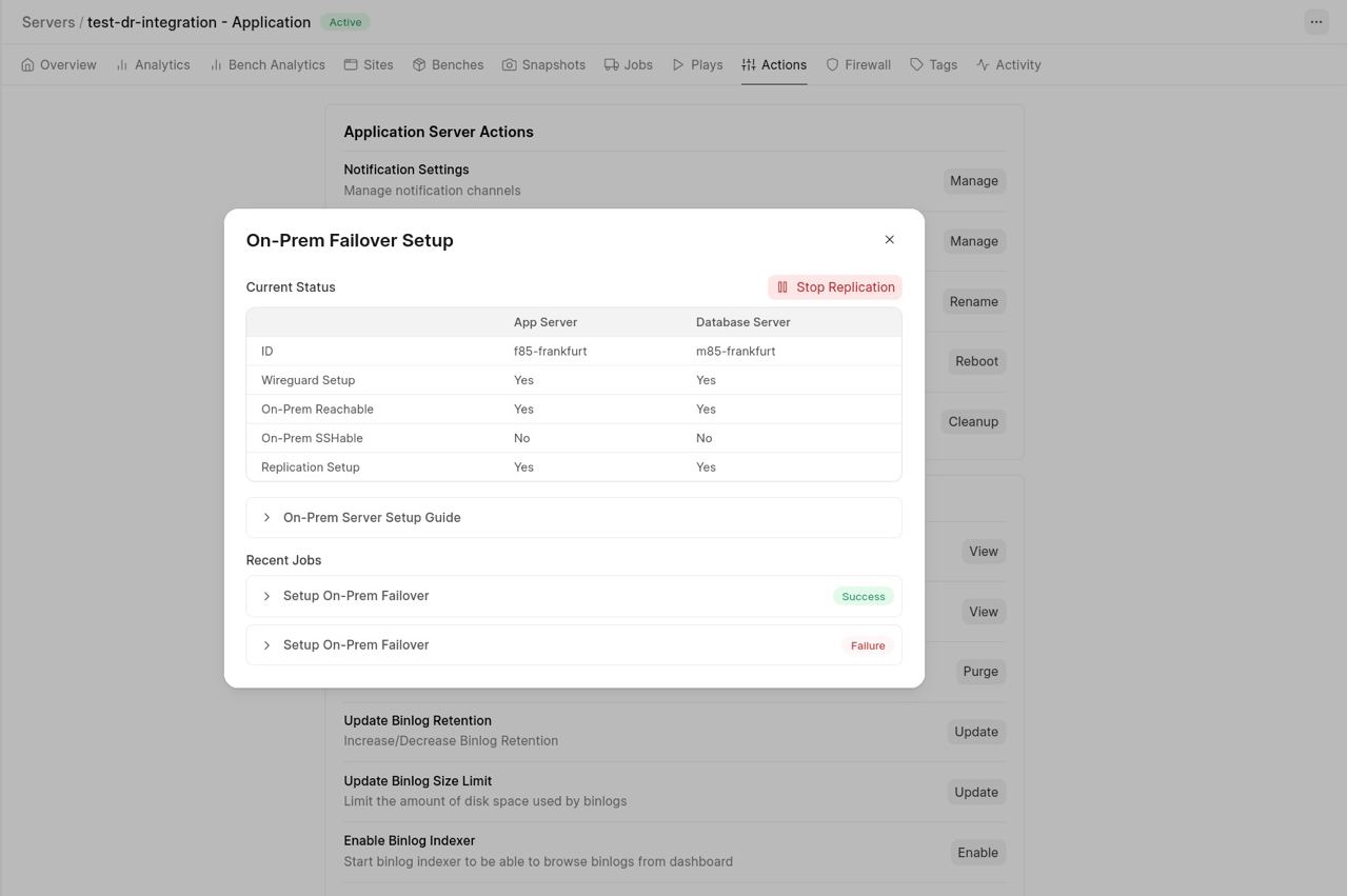 The ongoing conflicts in West Asia let to multiple feature requests of customers and partners demanding cross-region replication support, or at least a basic replication setup, so they can trigger a failover and continue accessing their sites even without internet access, if something happens to their FC servers. So we built on-premise replication and failover support, allowing users to maintain a near realtime backup of your production environment on a secondary machine, such as a local server or even a high-performance system outside Frappe Cloud. In the event of infrastructure outages or regional connectivity issues, you can switch to this backup and continue operations with minimal disruption, targeting a data loss window of under 10 minutes.