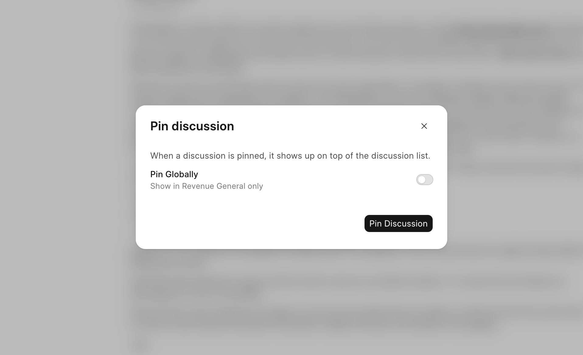 When you pin a discussion, it gets pinned on the global feed. This may not be intended always. You can now choose whether you want to pin a discussion on the global feed or only in the space.