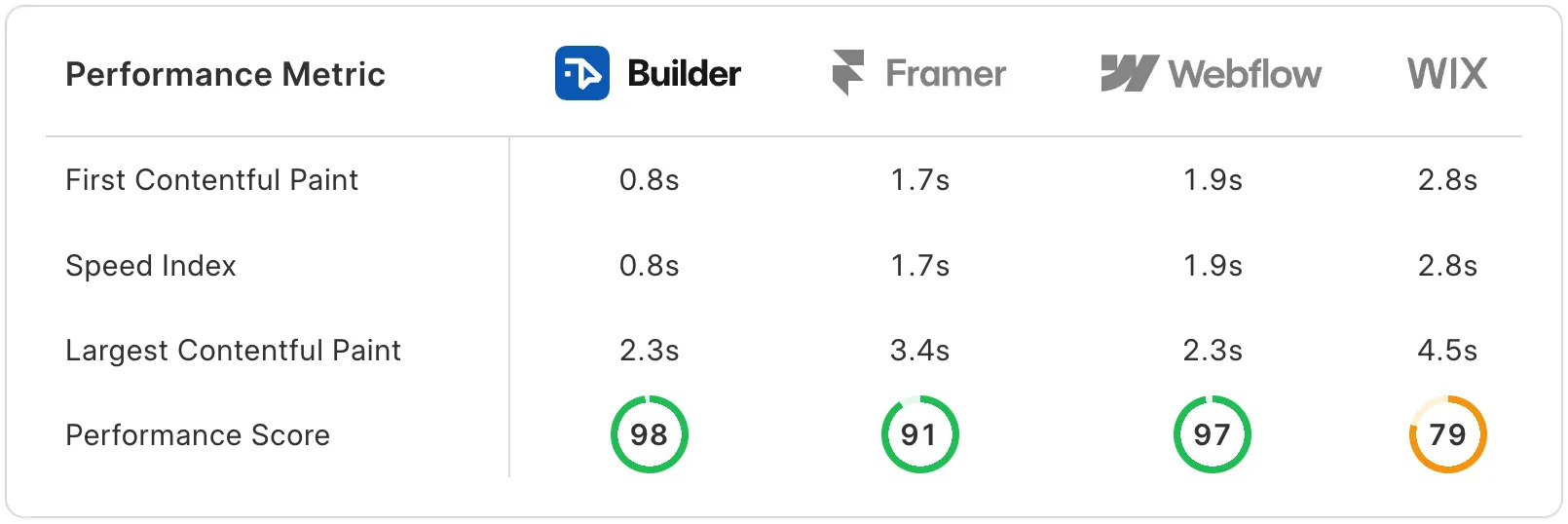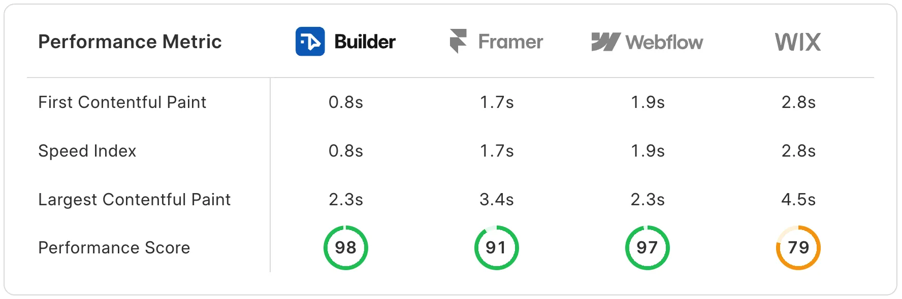 Every page created with Builder is optimized for speed, from the first byte to the final paint.