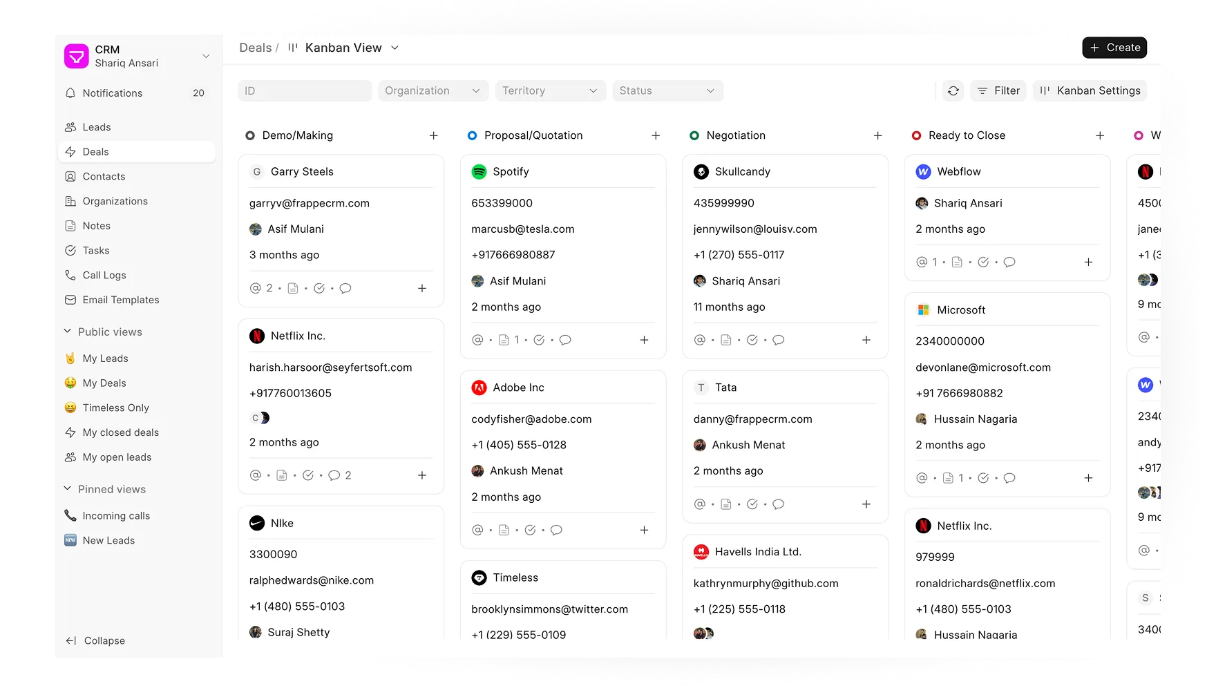 The Kanban view lets you move deals through customizable stages, giving a clear picture of where each opportunity stands. Spot bottlenecks, prioritize follow-ups, and focus on the right deals at the right time.