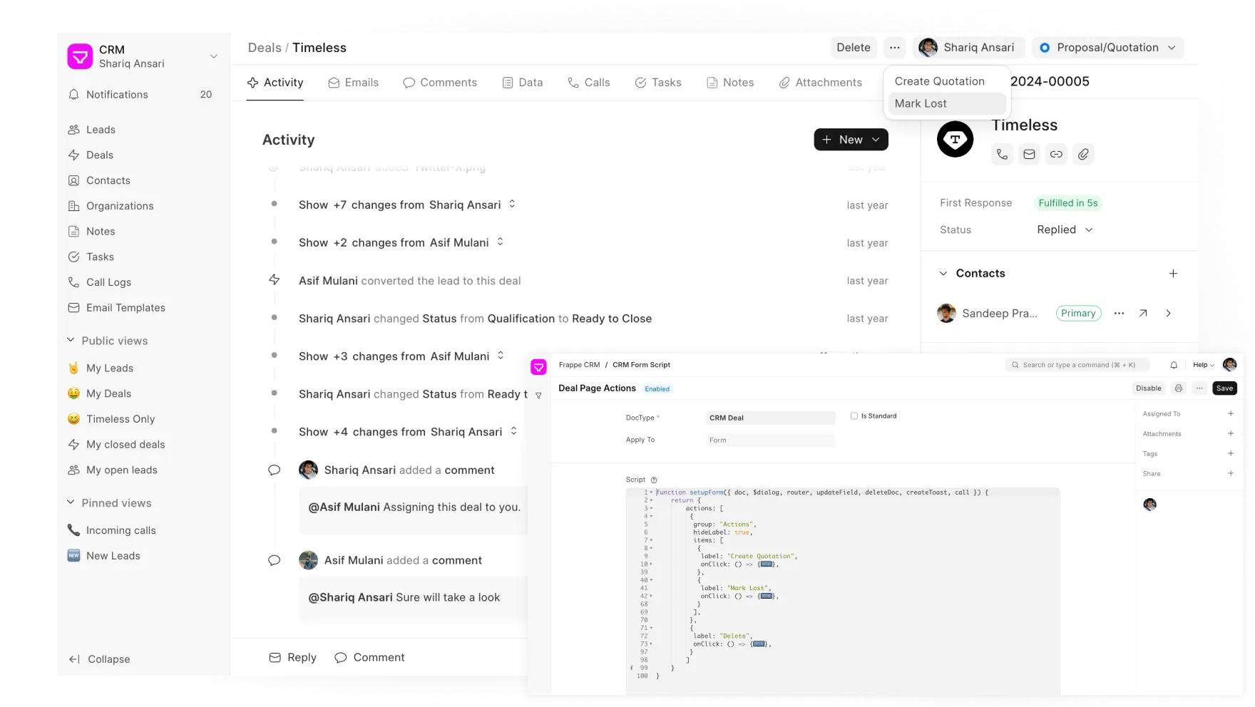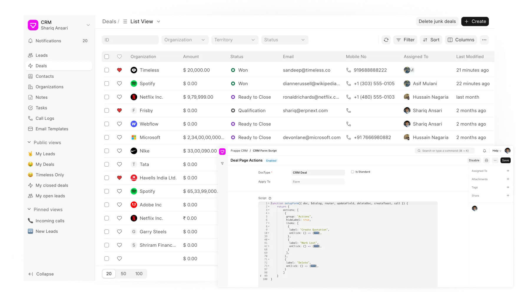 Frappe CRM puts you in control—customize it how you need, without waiting for a developer or paying extra.