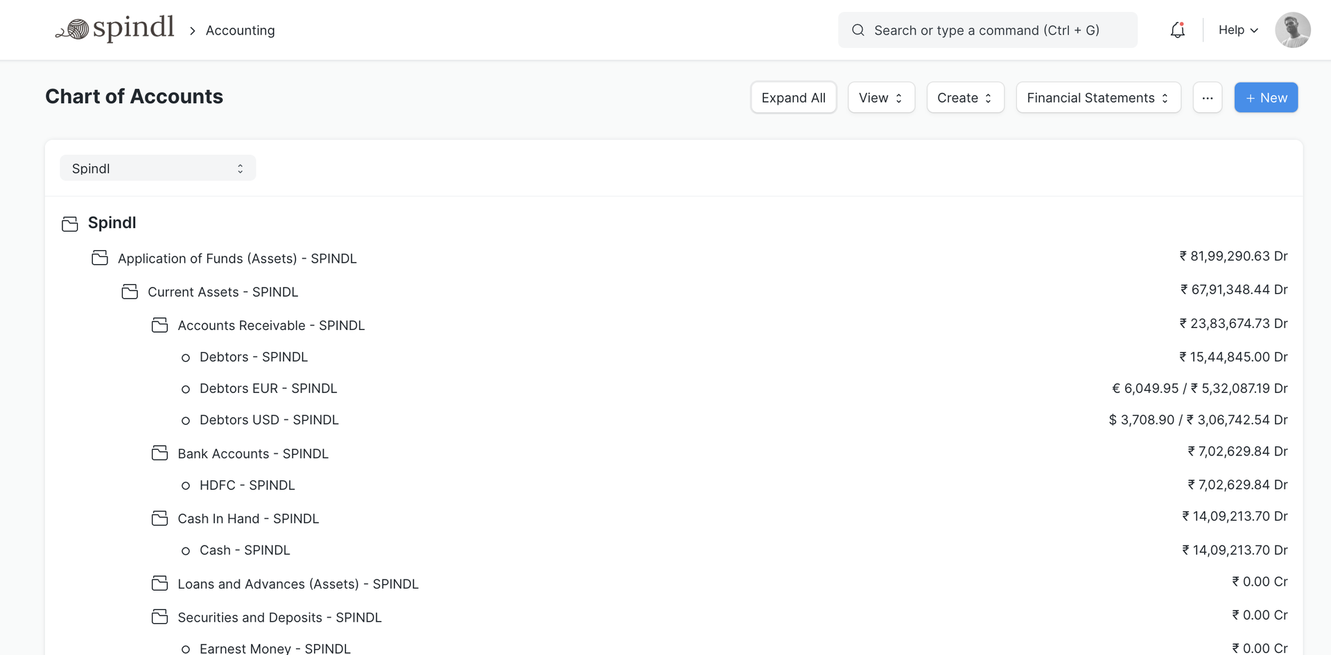 Use a tree structure to manage group and ledger accounts, which can be set up according to your business. Group accounts allow for better organization.