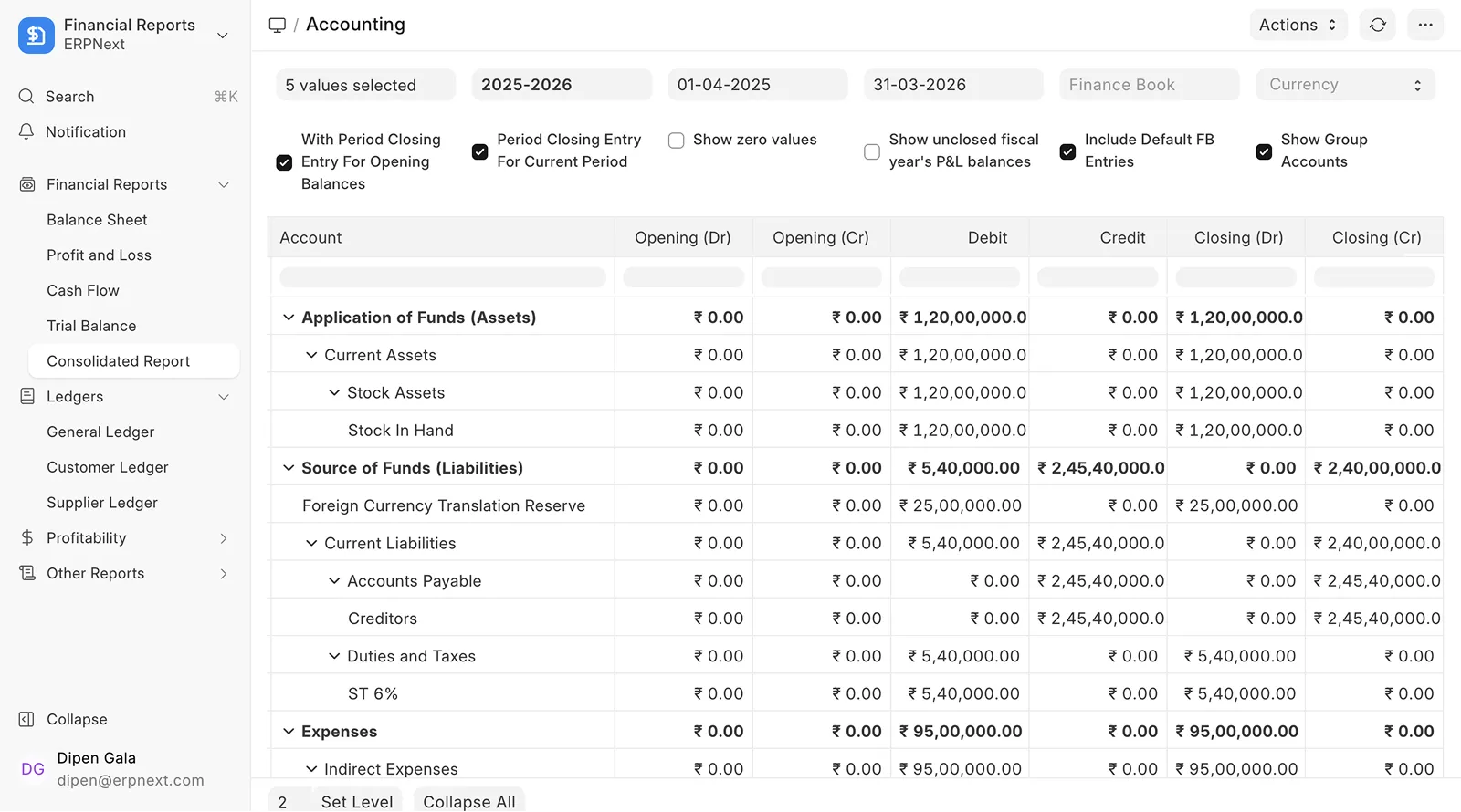 1.4 Consolidated Trial Balance Report