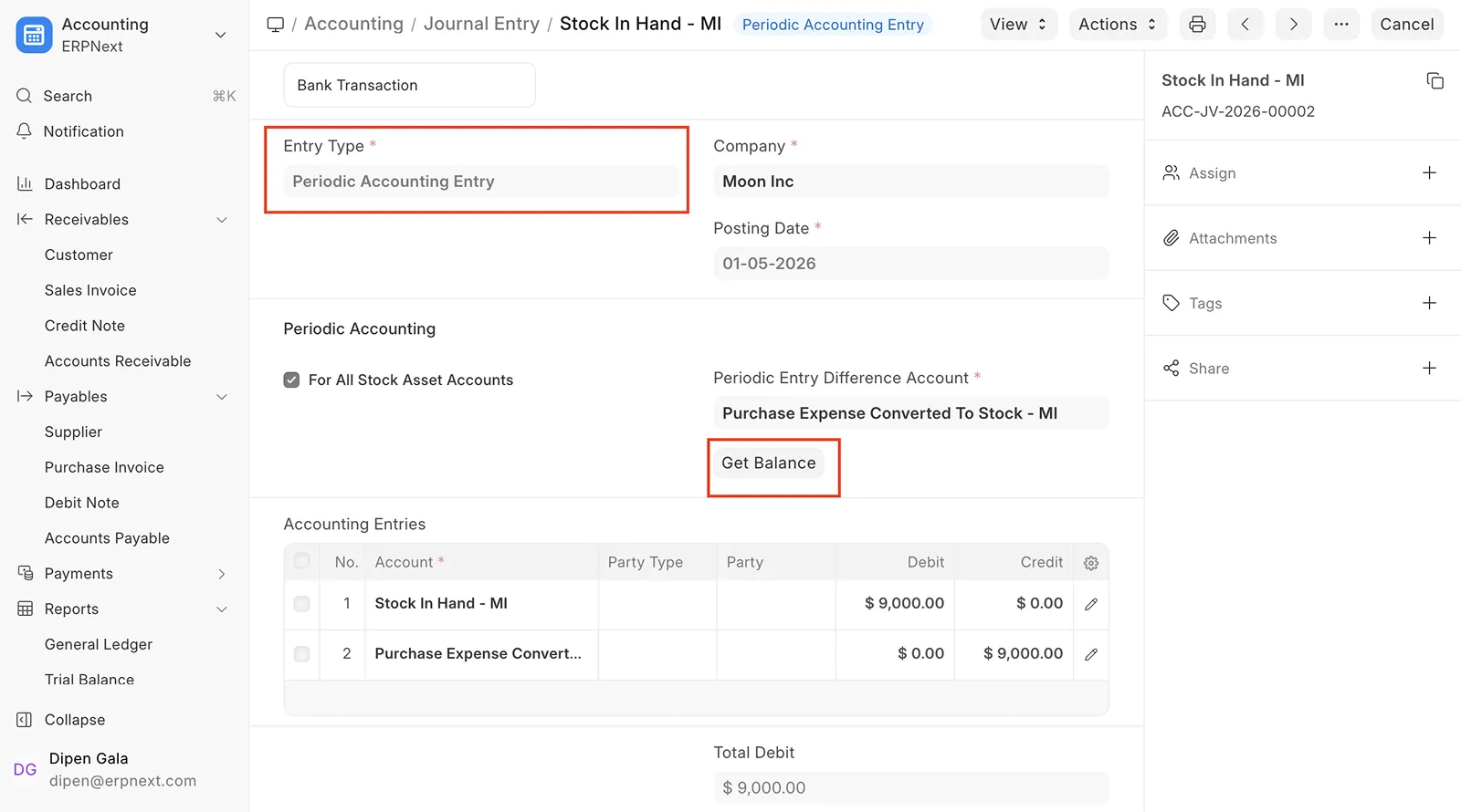 ERPNext v16 fixes this with Automatic Closing Stock Posting. Click “Get Balance,” and stock differences are posted directly to the general ledger in fast and secure way.