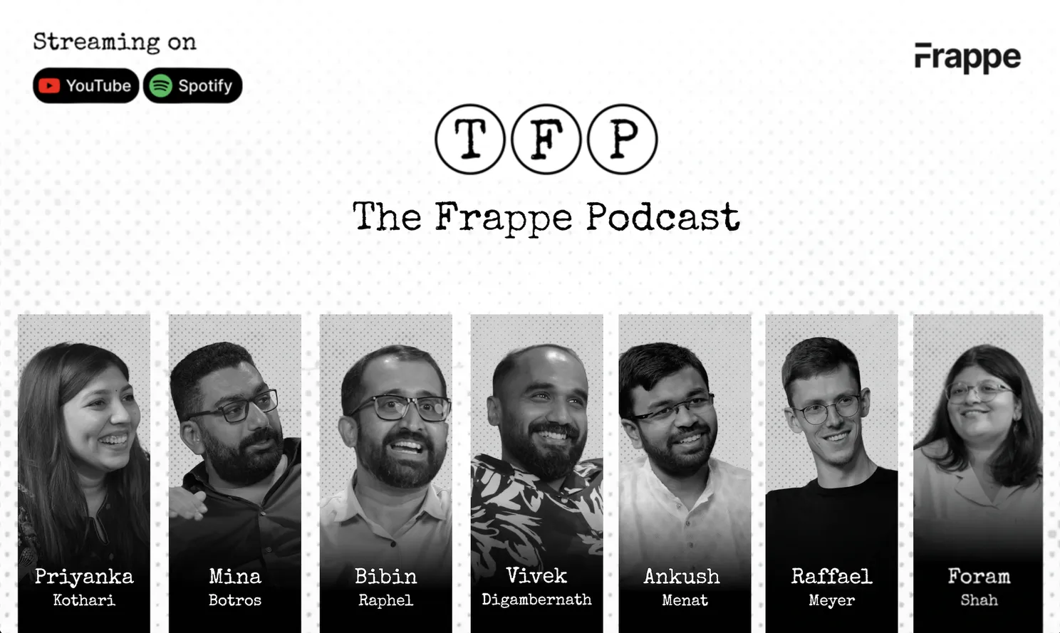 Episode 7 and Episode 8 of The Frappe Podcast are out now. Hop into a relaxed and fun conversation with our Middle East partners Vivek, Bibin, and Mina about building trust, business, and open source, and a behind-the-scenes chat with our CTO Ankush and Raffael from Germany on contributing to Frappe Framework.